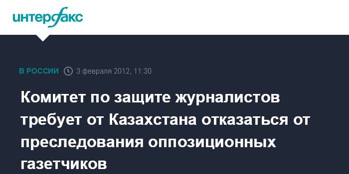 Вашингтон. 3 февраля. INTERFAX.RU - Власти Казахстана должны немедленно прекратить преследование заместителя главного редактора газеты "Республика" Оксаны Макушиной, говорится в заявлении международного Комитета по защите журналистов.