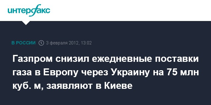 Газпром снизил ежедневные поставки газа в Европу через Украину на 75 млн куб. м, заявляют в Киеве