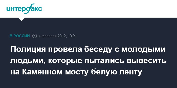 Москва. 4 февраля. INTERFAX.RU - Трое молодых людей были задержаны в центре Москвы за попытку повесить на Большом Каменном мосту транспарант, сообщил "Интерфаксу" источник в правоохранительных органах. "Трое граждан, предположительно студентов, были задержаны при попытке вывесить большую белую ленту на мосту минувшей ночью", - сказал собеседник агентства.
