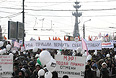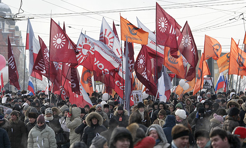 12:10 - Оппозиция начинает шествие "За честные выборы" по Большой Якиманке в сторону Болотной площади. Организованные колонны под разными флагами двинулись вперед, передает с места событий корреспондент "Интерфакса". Пройдя около 100 метров, колонны, полностью построенные, вновь остановились. В толпе скандируют лозунги против действующей власти, исполняют песню Виктора Цоя и группы "Кино" "Перемен", а также поздравляют друг друга с политической весной.