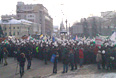 12:03 - Многие из пришедших на шествие обуты в валенки или унты, одеты в меховые шапки-ушанки. Лица некоторых участников шествия закрыты платками, чтобы избежать обморожения. Между тем некоторые из участников митинга, представляющие националистические организации, пришли на шествие в масках, полностью закрывающих лицо. Электронный термометр, установленный на станции метро "Октябрьская" (радиальная), показывает температуру минус 19 градусов.
