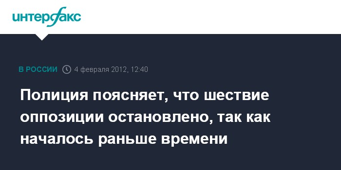Москва. 4 февраля. INTERFAX.RU – Представители правоохранительных органов заявили, что остановка колонн шествия "За честные выборы" связана с тем, что шествие началось раньше запланированного времени.