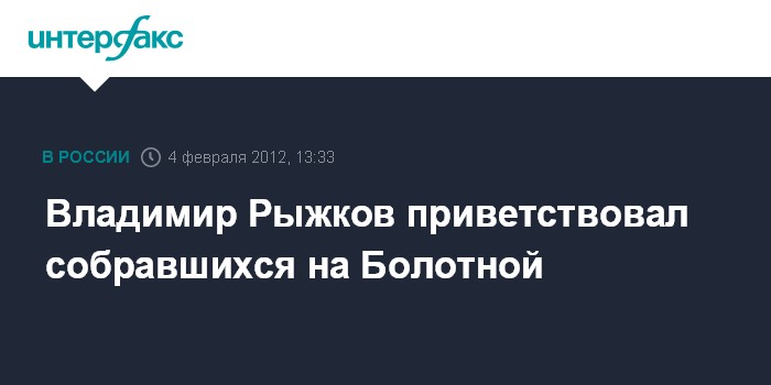 Москва. 4 февраля. INTERFAX.RU – На Болотной площади на сцене появился оппозиционер Владимир Рыжков, который приветствовал всех собравшихся.