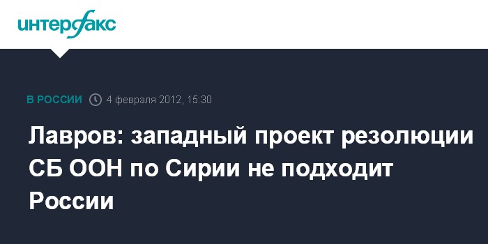 Москва. 4 февраля. INTERFAX.RU - Министр иностранных дел России Сергей Лавров подтвердил неприемлемость для Москвы обновленного западно-марокканского проекта резолюции СБ ООН по Сирии.