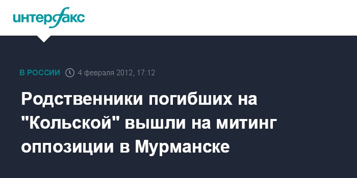 Мурманск. 4 февраля. INTERFAX.RU - Родственники и близкие погибших в результате крушения буровой установки "Кольская" вышли на митинг оппозиции в Мурманске, передал корреспондент "Интерфакса". Несмотря на морозную погоду на акцию, прошедшую возле памятника погибшим кораблям на улице Шмидта в Мурманске, собралось около 100 человек.