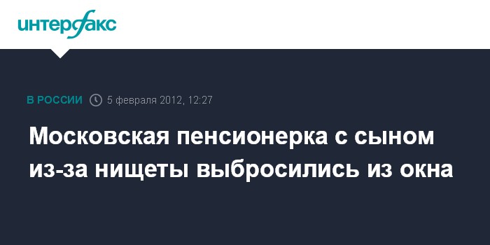 Московская пенсионерка с сыном из-за нищеты выбросились из окна