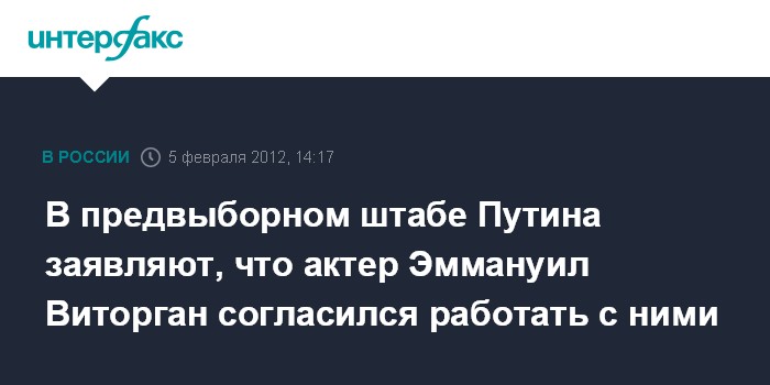 В предвыборном штабе Путина заявляют, что актер Эммануил Виторган согласился работать с ними