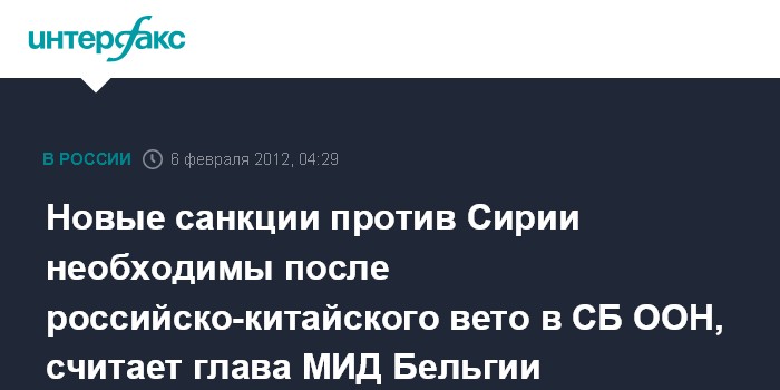 Новые санкции против Сирии необходимы после российско-китайского вето в СБ ООН, считает глава МИД Бельгии