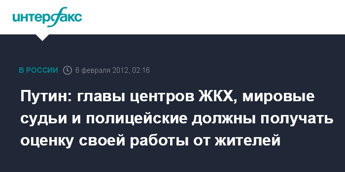 Путин: главы центров ЖКХ, мировые судьи и полицейские должны получать оценку своей работы от жителей