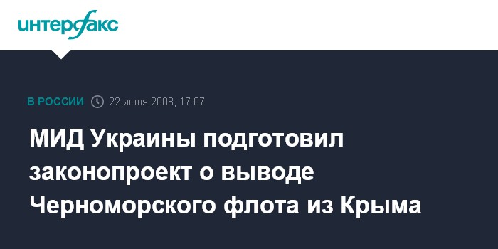 Москва. 22 июля. INTERFAX.RU - Министерство иностранных дел Украины подготовило законопроект о прекращении действия соглашения с Россией о пребывании Черноморского флота в Крыму, заявил глава МИД Владимир Огрызко на пресс-конференции сегодня.