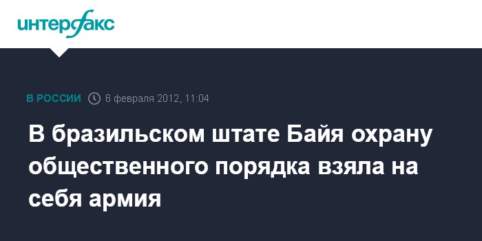 Рио-де-Жанейро. 6 февраля. INTERFAX.RU - Вооруженные силы Бразилии взяли на себя функции по обеспечению безопасности в штате Байя на северо-востоке страны, где уже шестой день продолжается забастовка военной полиции, сообщает бразильская телерадиокомпания "Глобу".