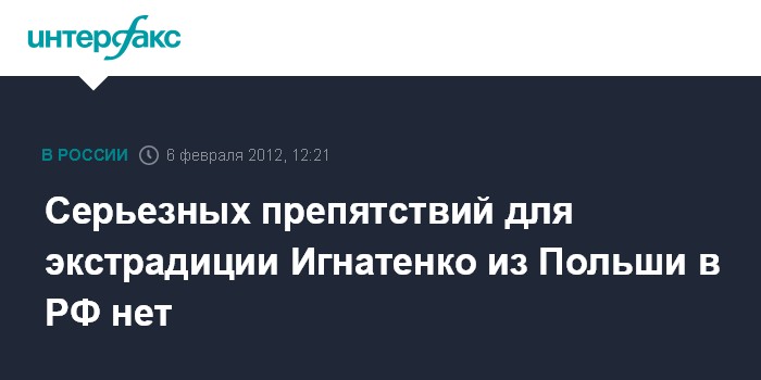 Серьезных препятствий для экстрадиции Игнатенко из Польши в РФ нет