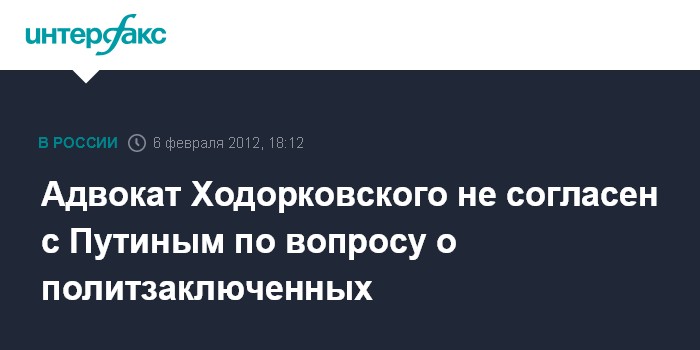 Москва. 6 февраля. INTERFAX.RU - Защита бывшего руководителя НК "ЮКОС" Михаила Ходорковского сомневается в искренности слов премьер-министра России Владимира Путина об отсутствии в стране политзаключенных.