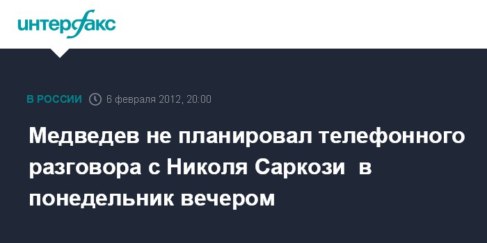 Медведев не планировал телефонного разговора с Николя Саркози в понедельник вечером