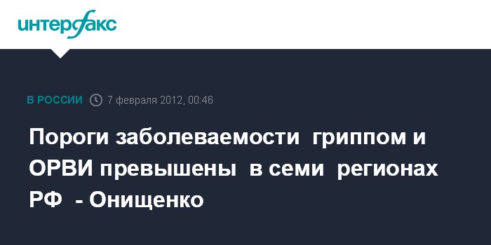 Пороги заболеваемости гриппом и ОРВИ превышены в семи регионах РФ - Онищенко