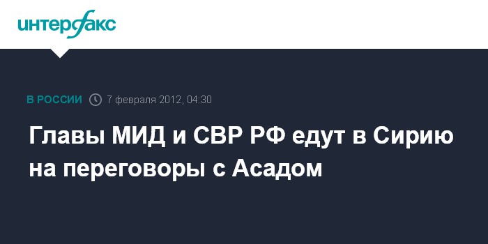 Главы МИД и СВР РФ едут в Сирию на переговоры с Асадом