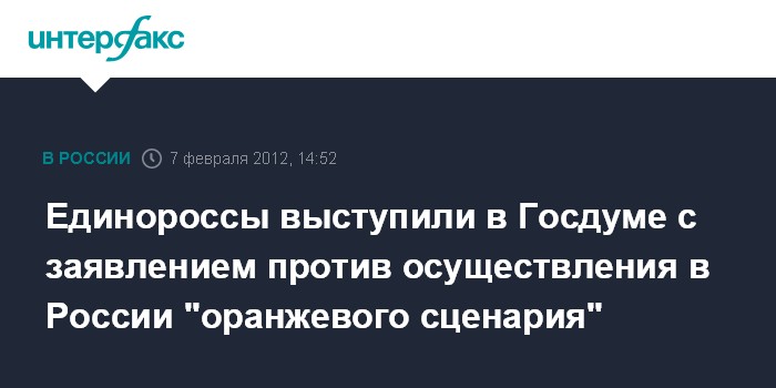 Москва. 7 февраля. INTERFAX.RU - Фракция "Единая Россия" во вторник выступила с заявлением "В защиту конституционного строя, гражданского мира и демократии в России", которое направлено против реализации "оранжевого" сценария в России.