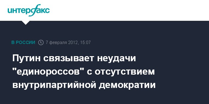Москва.7 февраля. INTERFAX.RU - Кандидат в президенты РФ Владимир Путин не считает, что неудача "Единой России" на прошедших думских выборах была вызвана плохо организованной работой местных штабов.