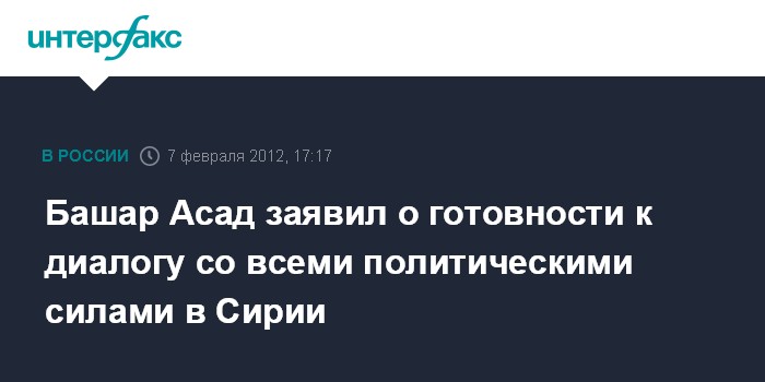 Башар Асад заявил о готовности к диалогу со всеми политическими силами в Сирии