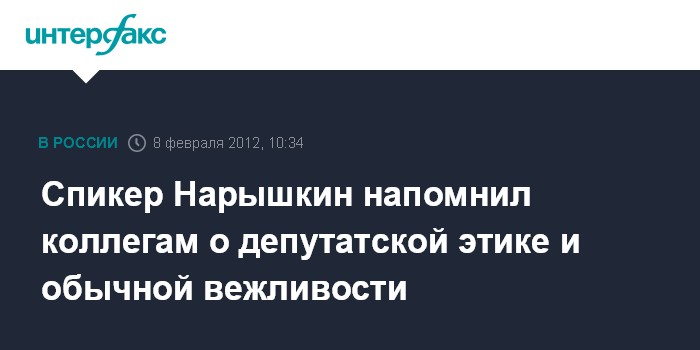 Открывая заседание Думы в среду, Нарышкин напомнил о произошедшем во вторник в зале инциденте. По мнению Нарышкина, его нельзя назвать цивилизованной дискуссией. "Я хочу обратить ваше внимание на то, чтобы мы все строго соблюдали и правила депутатской этики, и правила элементарной человеческой вежливости", - сказал Нарышкин, открывая заседание Думы в среду.