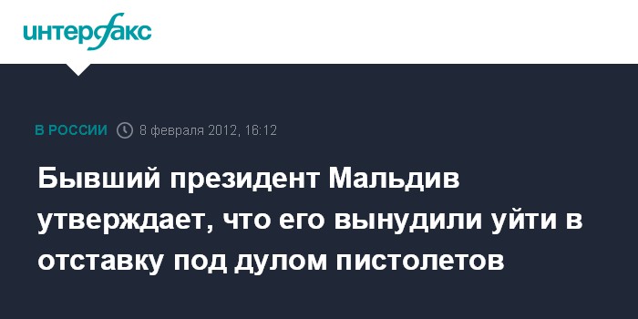 Мале. 8 февраля. INTERFAX.RU - Экс-президент Мальдив Мухаммед Нашид заявил, что его заставили подать в отставку под дулом пистолетов, сообщают в среду местные СМИ.