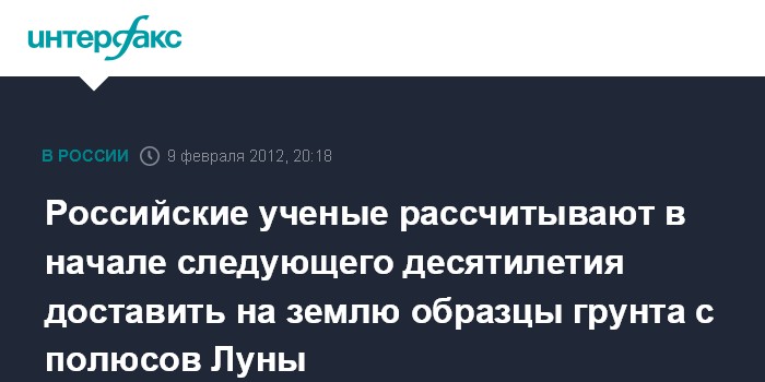 Москва. 9 февраля. INTERFAX.RU - В планах российских ученых тщательно исследовать с помощью посадочных аппаратов полярные области Луны, сказал "Интерфаксу-АВН" директор Института космических исследований (ИКИ) РАН академик Лев Зеленый.