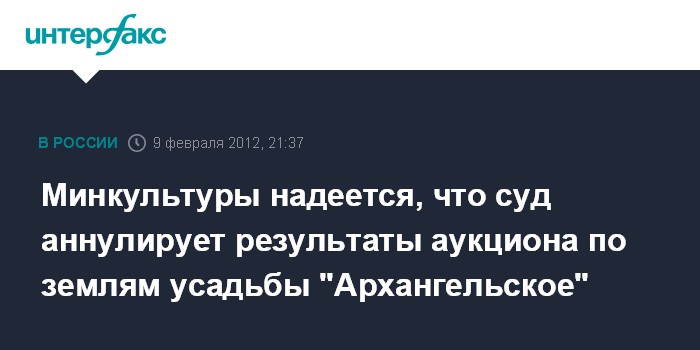 Минкультуры надеется, что суд аннулирует результаты аукциона по землям усадьбы "Архангельское"