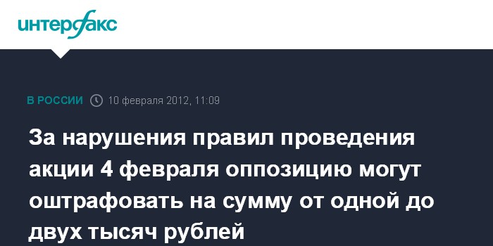 За нарушения правил проведения акции 4 февраля оппозицию могут оштрафовать на сумму от одной до двух тысяч рублей