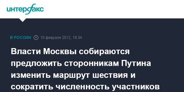 Власти Москвы собираются предложить сторонникам Путина изменить маршрут шествия и сократить численность участников