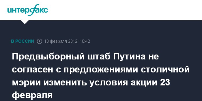 Предвыборный штаб Путина не согласен с предложениями столичной мэрии изменить условия акции 23 февраля