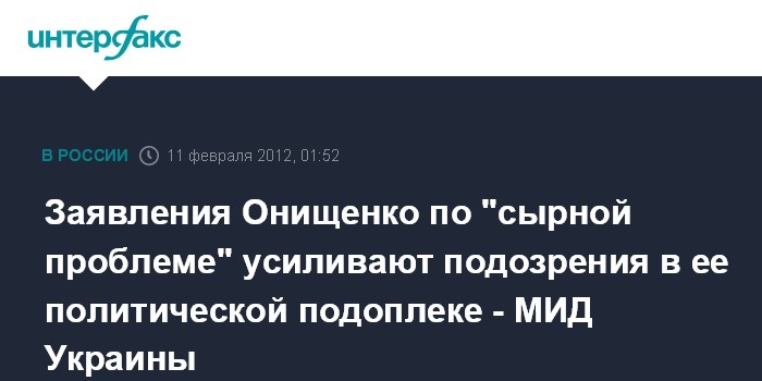 "Последние заявления Геннадия Онищенко только усиливают подозрения в политической подоплеке так называемой "сырной проблемы", возникшей в отношениях между Украиной и Россией", - сообщил в комментарии агентству "Интерфакс-Украина" директор департамента информационной политики МИД Украины Олег Волошин.