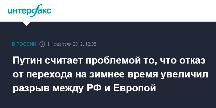 "Я ничего не инициировал, просто очень много вопросов на этот счет идет. Еще когда обсуждали эту тему, естественно, Дмитрий Анатольевич (президент Дмитрий Медведев - ИФ) это сделал, идя навстречу пожеланиям трудящихся, потому что очень многие были недовольны тем, что время переводится", - ответил В.Путин.