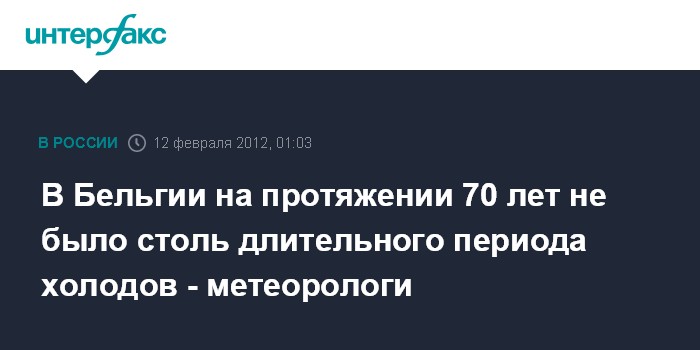 Брюссель. 12 февраля. ИНТЕРФАКС - В субботу Бельгия пережила тринадцатый по счету день, когда температура опускалась ниже нуля, чего не было в стране уже 70 лет, отмечают местные метеорологи.