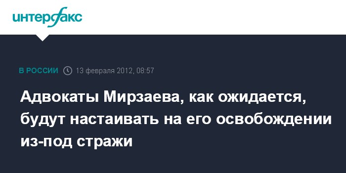 Адвокаты Мирзаева, как ожидается, будут настаивать на его освобождении из-под стражи