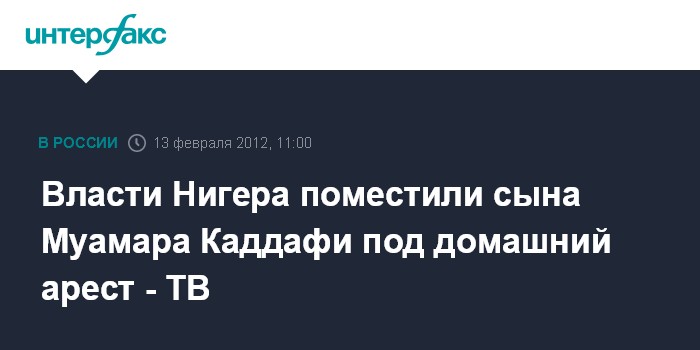 Вашингтон. 13 февраля. INTERFAX.RU - Бежавший в Нигер сын покойного ливийского лидера Муамара Каддафи - Саади - помещен под домашний арест, а его телефон отключен, передает телекомпания CNN.