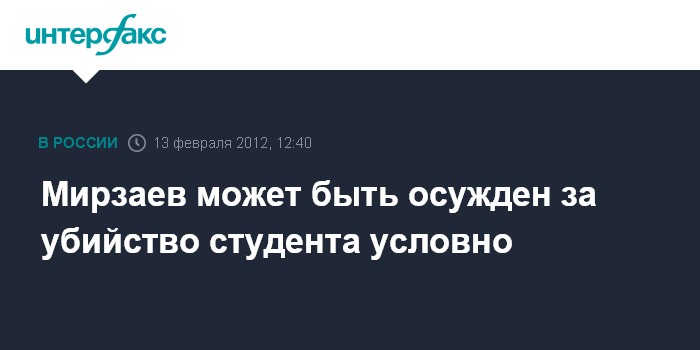 "Если у Мирзаева не будет отягощающих вину факторов, то ему может быть назначено условное наказание", - заявил "Интерфаксу" прокурор по делу Алексей Смирнов.