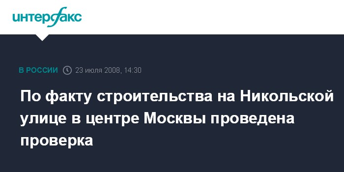 Москва. 23 июля. INTERFAX.RU - Прокуратура Москвы провела проверку по факту строительных работ на территории, прилегающей к памятникам архитектуры на Никольской улице в центре столицы.