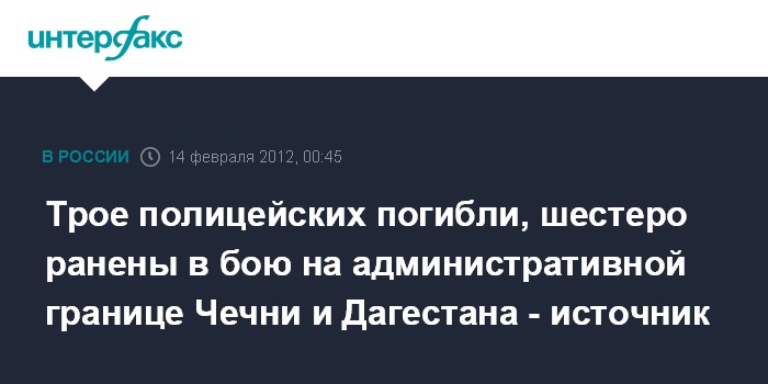 Ростов-на-Дону. 14 февраля. ИНТЕРФАКС-ЮГ - В ходе боестолкновения с неустановленной бандгруппой на административной границе Чечни и Дагестана погибли трое полицейских, еще шестеро ранены, сообщили во вторник агентству "Интерфакс-Юг" в правоохранительных органах.