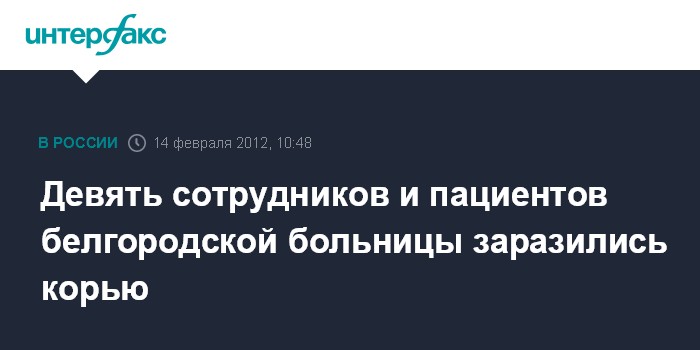Белгород. 14 февраля. INTERFAX.RU - Массовое заражение корью выявлено в поселке Чернянка Белгородской области, сообщает во вторник пресс-служба регионального управления Роспотребнадзора.