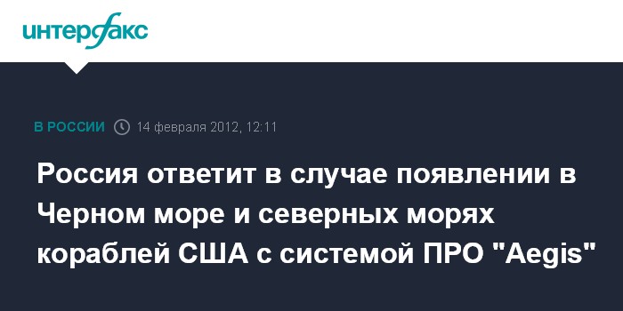 Россия ответит в случае появлении в Черном море и северных морях кораблей США с системой ПРО "Aegis"