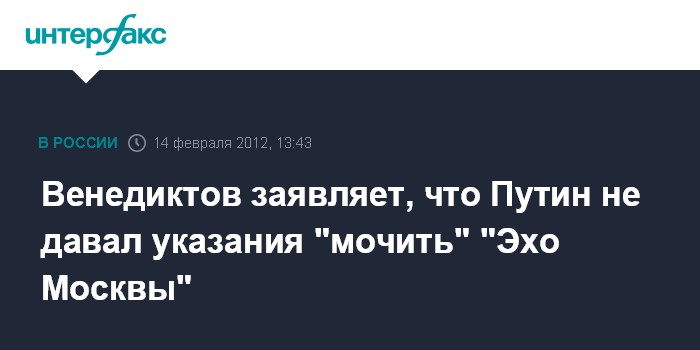 Москва. 14 февраля. INTERFAX.RU - Главный редактор "Эха Москвы" Алексей Венедиктов уверен, что премьер РФ Владимир Путин не давал указания "мочить" радиостанцию.