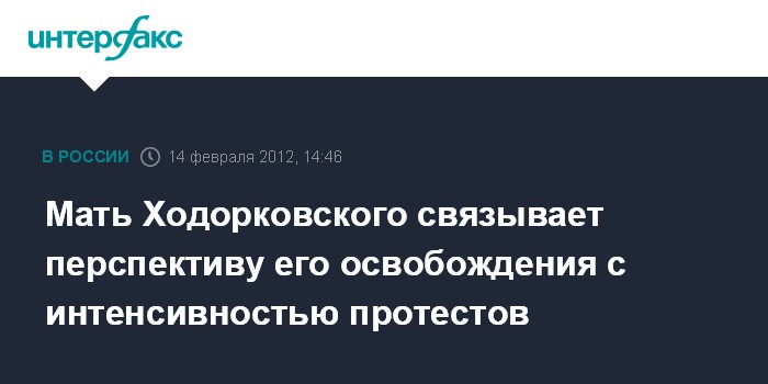 Москва. 14 февраля. INTERFAX.RU - Мать экс-главы "ЮКОСа" Михаила Ходорковского считает, что освобождение ее сына напрямую зависит от нарастания протестных настроений в России.