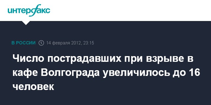 Число пострадавших при взрыве в кафе Волгограда увеличилось до 16 человек