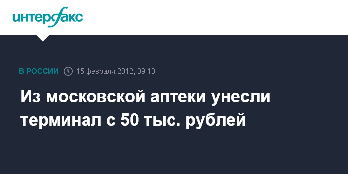 Москва.15 февраля. INTERFAX.RU - Неизвестные похитили платежный терминал из помещения аптеки на юге Москвы, сообщил "Интерфаксу" источник в правоохранительных органах в среду.