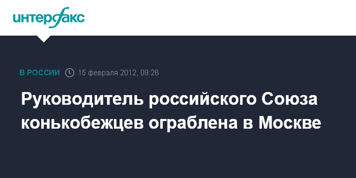 Москва. 15 февраля. INTERFAX.RU - На юго-западе Москвы ограблена генеральный секретарь Союза конькобежцев Олимпийского комитета России, сообщил "Интерфаксу" источник в правоохранительных органах в среду.