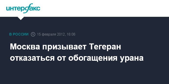 Гаага. 15 февраля. INTERFAX.RU - Глава МИД РФ Сергей Лавров призывает Иран заморозить обогащение урана и сотрудничать с МАГАТЭ.