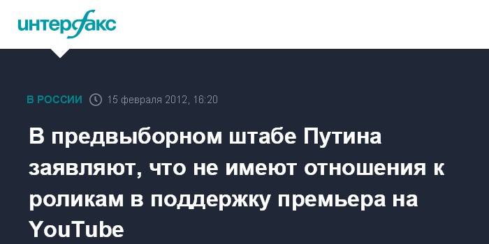 В предвыборном штабе Путина заявляют, что не имеют отношения к роликам в поддержку премьера на YouTube