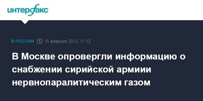 В Москве опровергли информацию о снабжении сирийской армиии нервнопаралитическим газом