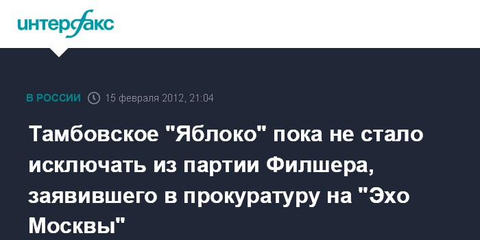 Тамбовское "Яблоко" пока не стало исключать из партии Филшера, заявившего в прокуратуру на "Эхо Москвы"