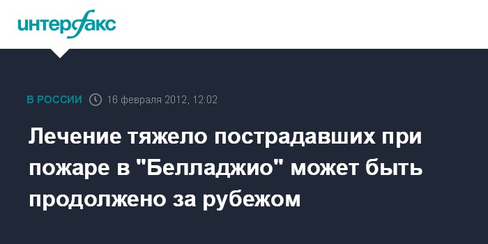 Лечение тяжело пострадавших при пожаре в "Белладжио" может быть продолжено за рубежом
